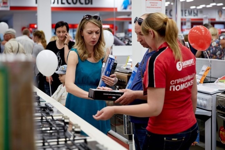 Открытая выкладка товара позволяет покупателям легко познакомиться с преимуществами техники и выбрать желаемую покупку.