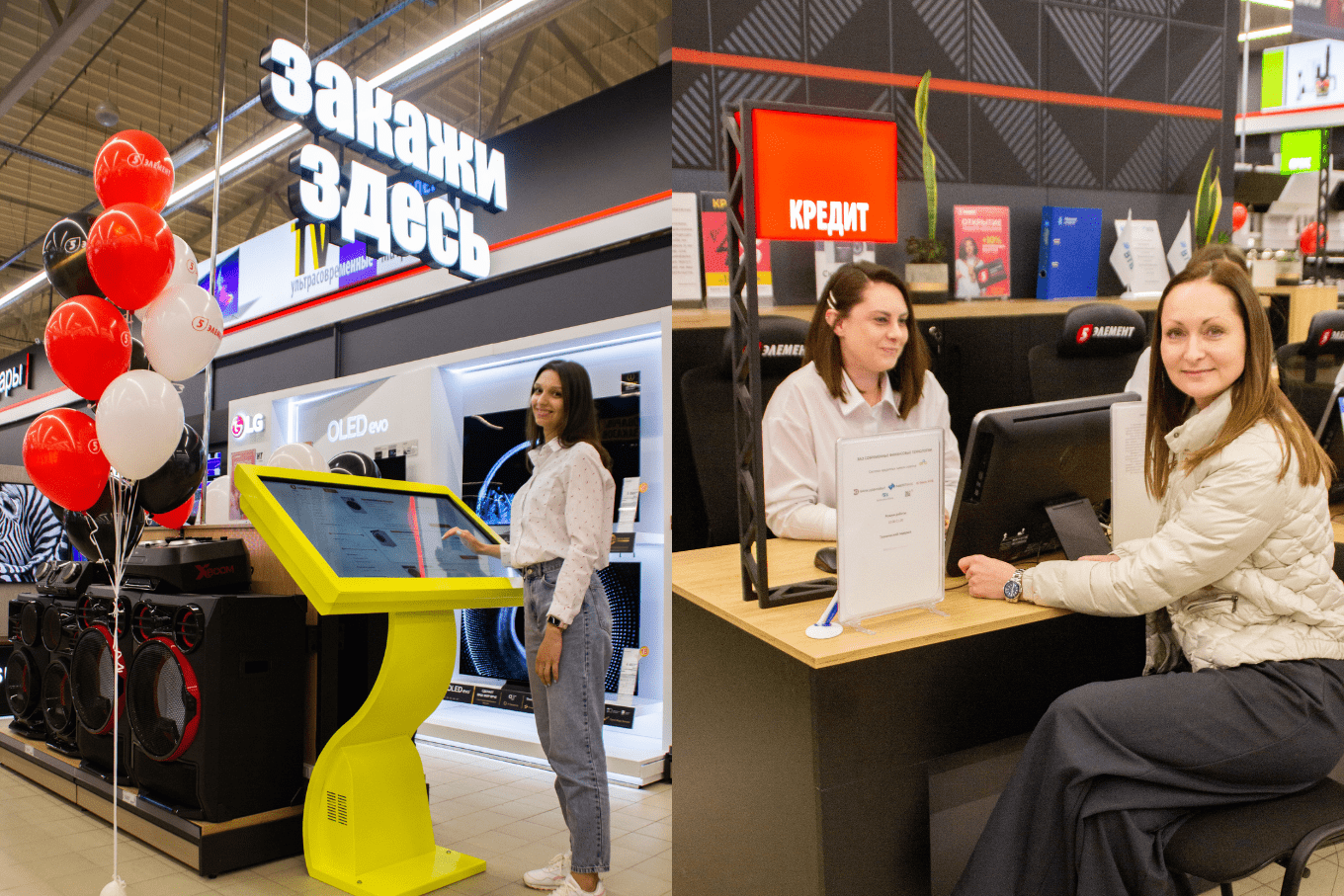 Если же не нашлось, например, гаджета нужной модели или цвета, то с помощью специального табло с доступом к интернет-магазину 5element.by можно оформить доставку в ближайший магазин сети и забрать нужный товар, как и любой другой интернет-заказ, в пункте выдачи заказов.