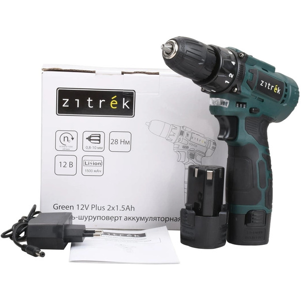 Дрель-шуруповерт Zitrek Green 12V Plus 085-1014 (с 2-мя АКБ)