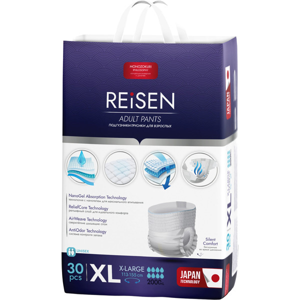 Отзывы на Одноразовые подгузники-трусики для взрослых REISEN размер XL 30шт