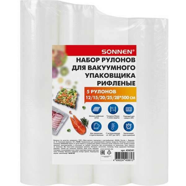 Рулоны для вакуумного упаковщика рифленые SONNEN 456341 (12/15/20/25/28см*500см) 5 шт.