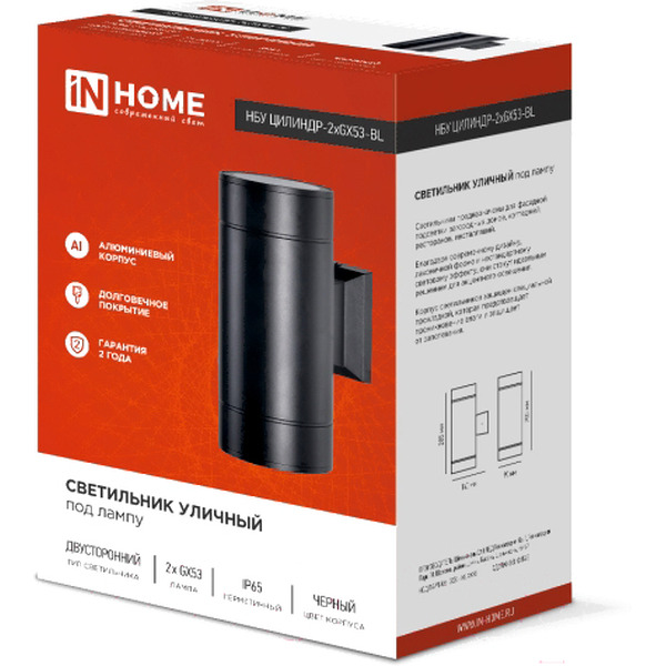 Уличный настенный светильник In Home Цилиндр-2А-GX53 2BL (черный)