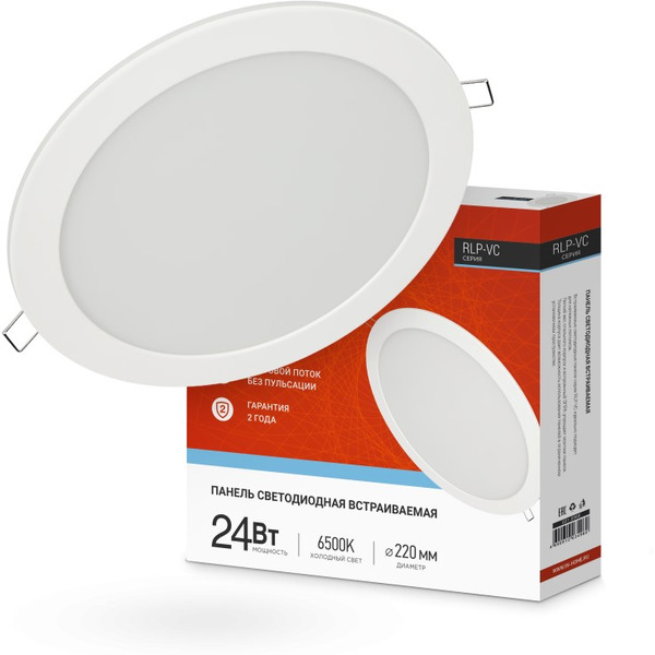 Встраиваемая светодиодная панель IN HOME круглая RLP-VC 24Вт 230В 6500К 1920Лм 220мм белая IP40