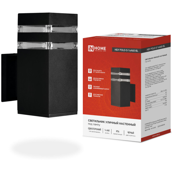 Отзывы на Светильник уличный настенный односторонний IN HOME НБУ POLO-S-1xA60-BL (4690612045078)