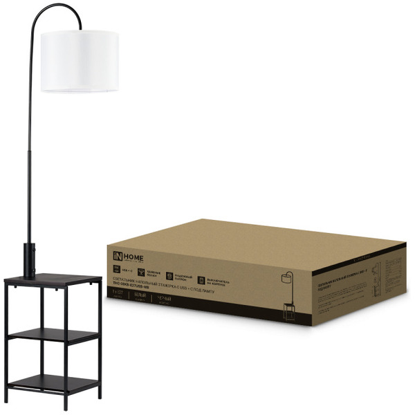 Отзывы на Светильник напольный под лампу этажерка IN HOME ТНО 08КВ-Е27USB-WB (4690612060392)