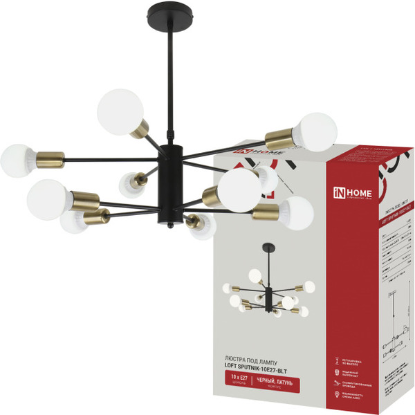 Отзывы на Люстра под лампу INhome LOFT SPUTNIK-10E27-BLT 10хЕ27 черный, латунь