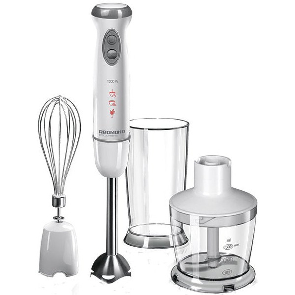 REDMOND RHB-2944 – мощный ручной блендер 3-в-1. В комплекте идет погружная насадка для приготовления супа-пюре, чаша-измельчитель для измельчения и насадка-миксер. Благодаря такому набору вы сможете перерабатывать любые типы продуктов и готовить разнообразные блюда.