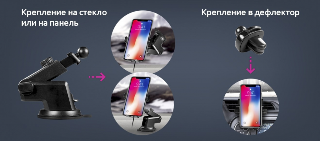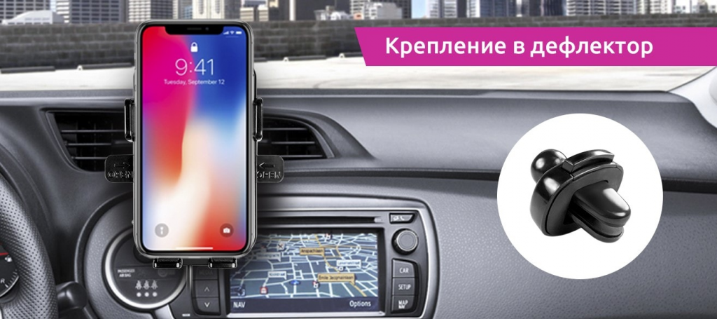 Тип крепления: На лобовое стекло, На приборную панель, На решетку вентиляции