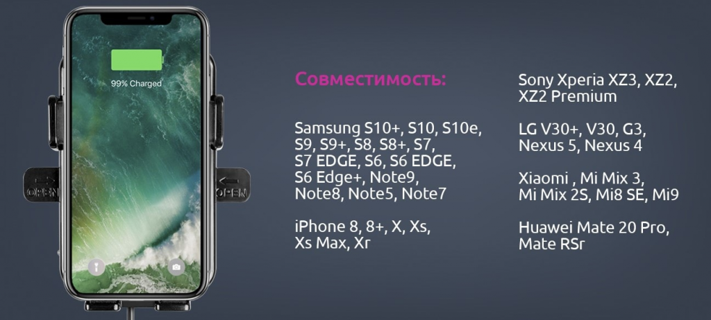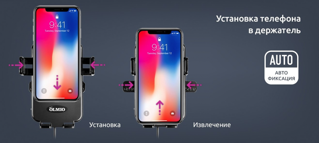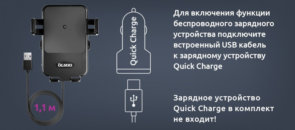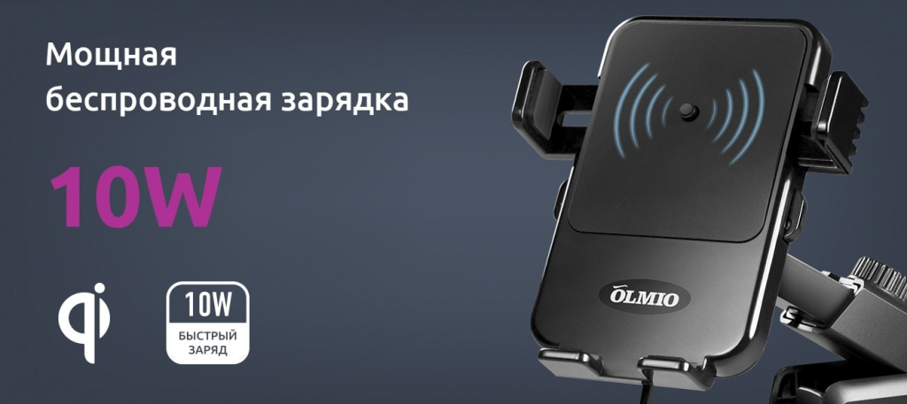 Держатель автомобильный OLMIO 038848 с беспроводной зарядкой QI