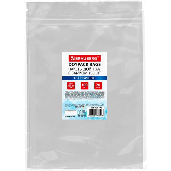 Отзывы на Пакет Дой-Пак с замком BRAUBERG 700700 (прозрачный, 200 х 300 + 50 мм, 100 штук 70 мкм)