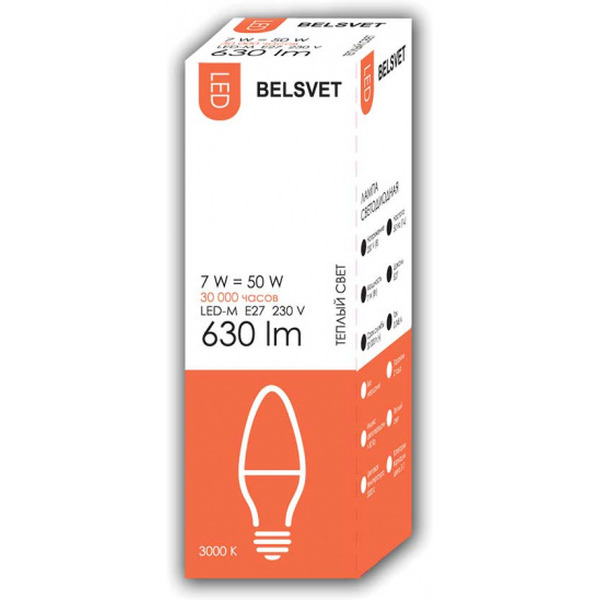 - Светодиодная лампа Belsvet LED-M C37 7W 3000 К E27