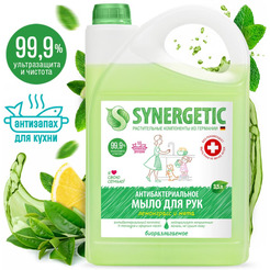 Мыло жидкое биоразлагаемое для кухни и мытья рук SYNERGETIC Лемонграсс и мята, 3.5 л.