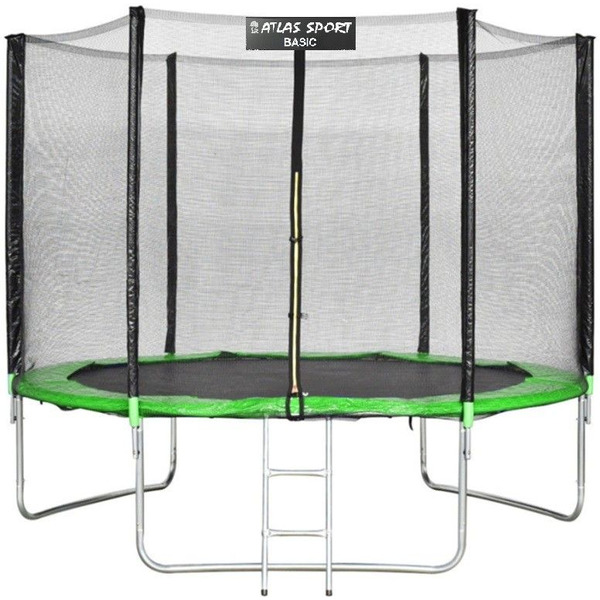 Батут пружинный ATLAS SPORT 8ft BASIC Green (с защитной сеткой и лестницей)