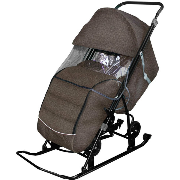 Санки-коляска GalaXy Снежинка Универсал 1 (лен серо-коричневый)