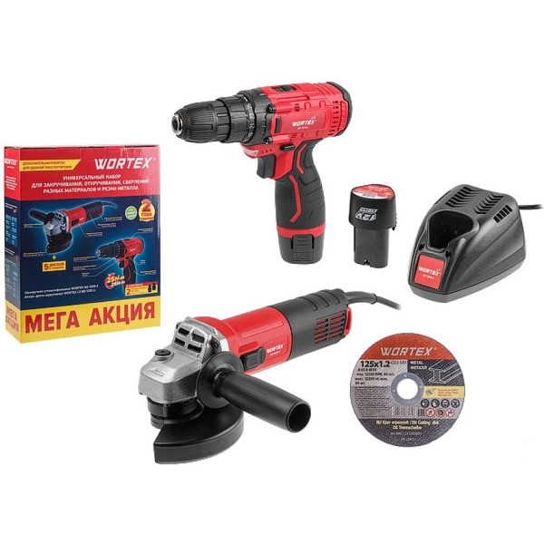 Отзывы на Шуруповерт + угловая шлифмашина Wortex 1329386 (LX BD 1215 Li + AG 1209-3)