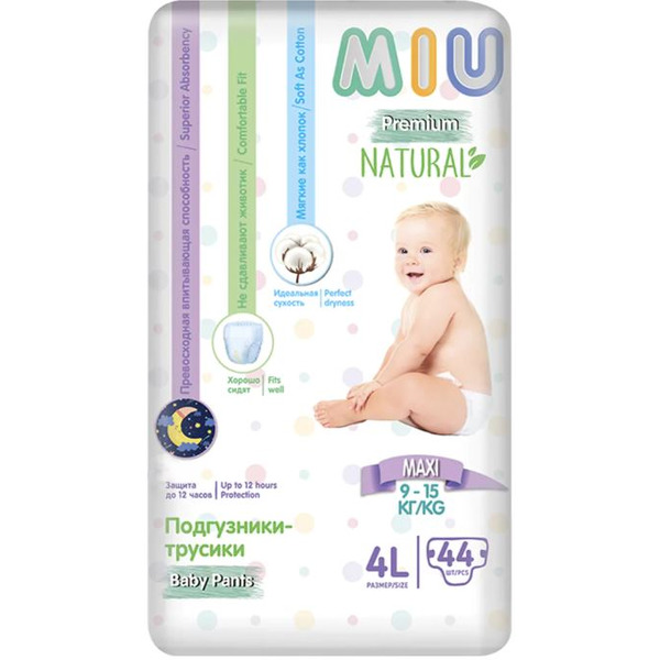 Трусики-подгузники MIU Premium Natural 4L Maxi (44 шт)