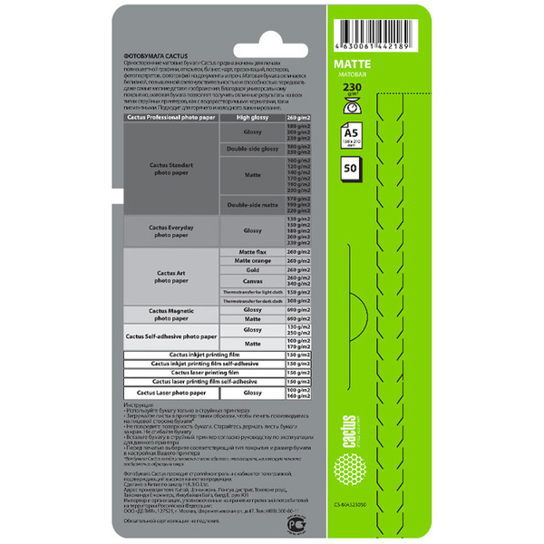 Отзывы на Фотобумага Cactus CS-MA523050