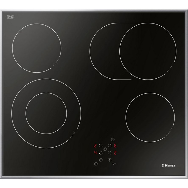 Стеклокерамическая варочная поверхность Hansa BHCI66706 оснащена современными нагревательными элементами типа Hi-Light. Общая мощность устройства составляет 6.8 кВт. Такой высокий показатель позволяет задействовать все четыре конфорки одновременно без потери эффективности.