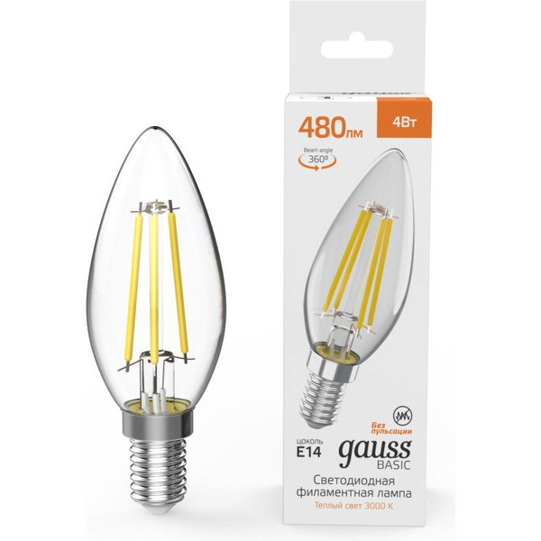 Отзывы на Светодиодная лампочка Gauss Basic Filament E14 4Вт 3000К (50312142)