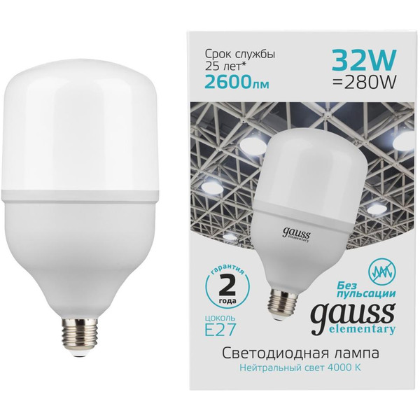 Отзывы на Светодиодная лампочка Gauss Elementary T100 E27 32 Вт 6500 K 63233