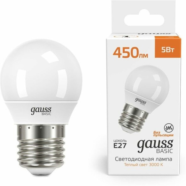 Светодиодная лампочка Gauss Elementary Basic E27 5W 3000K G45 10502152