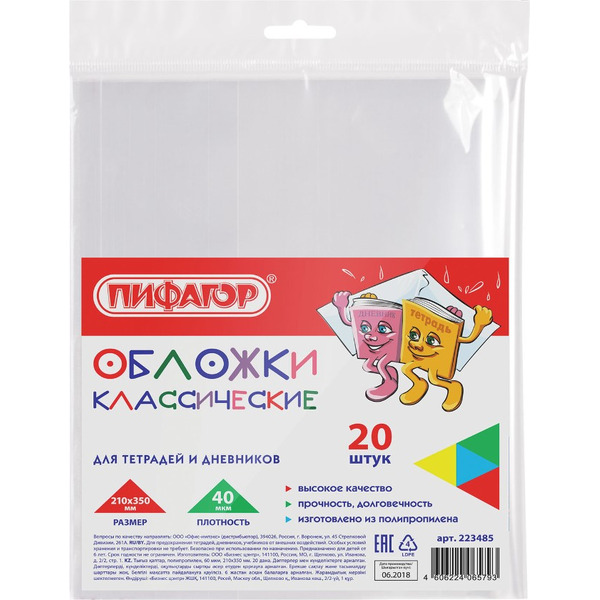 Отзывы на Обложки классические для тетрадей и дневников, 20 шт, 40 мкм, 210х350 мм ПИФАГОР 223485