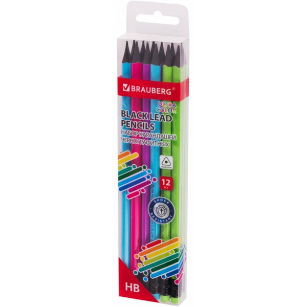 Отзывы на Набор карандашей чернографитных Brauberg ULTRA COLOR HB, с ластиком, пластиковые (181710) 12 шт