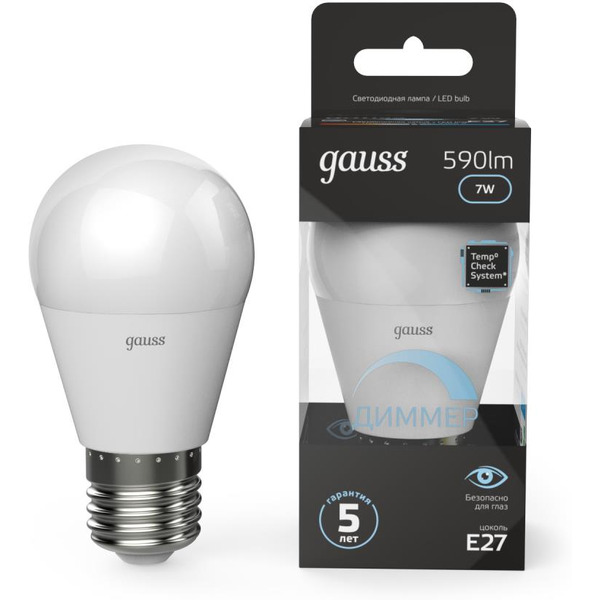 Отзывы на Светодиодная лампочка Gauss Globe-dim E27 7 Вт 4100 К 105102207-D