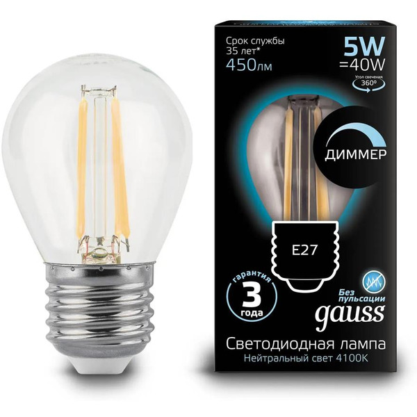 Отзывы на Светодиодная лампочка Gauss E27 5 Вт 4100K 105802205-D