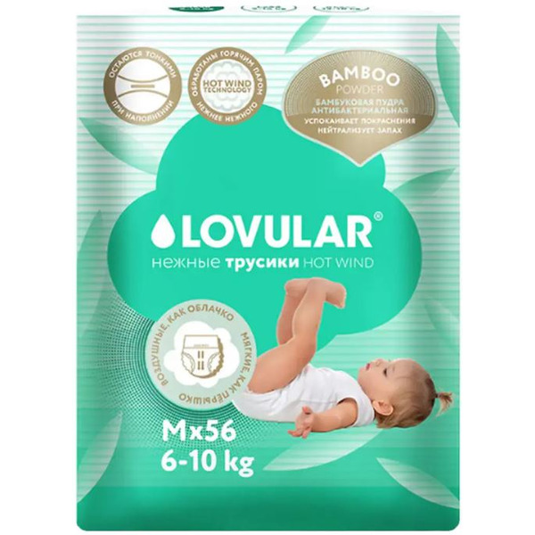 Подгузники-трусики Lovular Bamboo M 6-10 кг 429582 (56 шт)