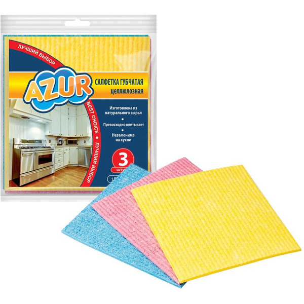 Салфетка губчатая AZUR 024160 3шт. (15х15 см)