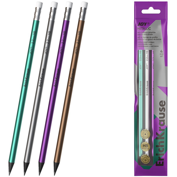 - Набор чернографитных карандашей Erich Krause JOY® Metallic 61732 (4 шт)