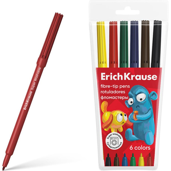 - Фломастеры Erich Krause Jolly Friends Super Washable 61830 (6 цв)