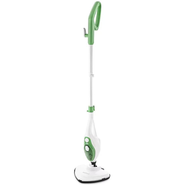 Комментарий: Хорошая швабра за свои деньги. Резервуара хватает, чтобы пройтись по всей однокомнатной квартире. Лёгкая в использовании, манёвренная, немного мешает расположение провода, но по-другому никак. Можно использовать для очистки мебели или как пароочиститель. Есть насадка, которая позволяет фиксировать тряпку для чистки ковровых покрытий. Самое главное, что за доступные средства мы получили мощный аппарат, который справляется пока с любыми загрязнениями.