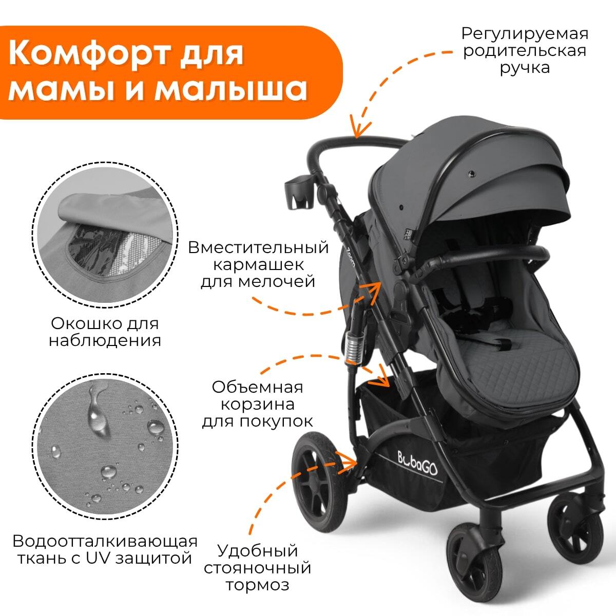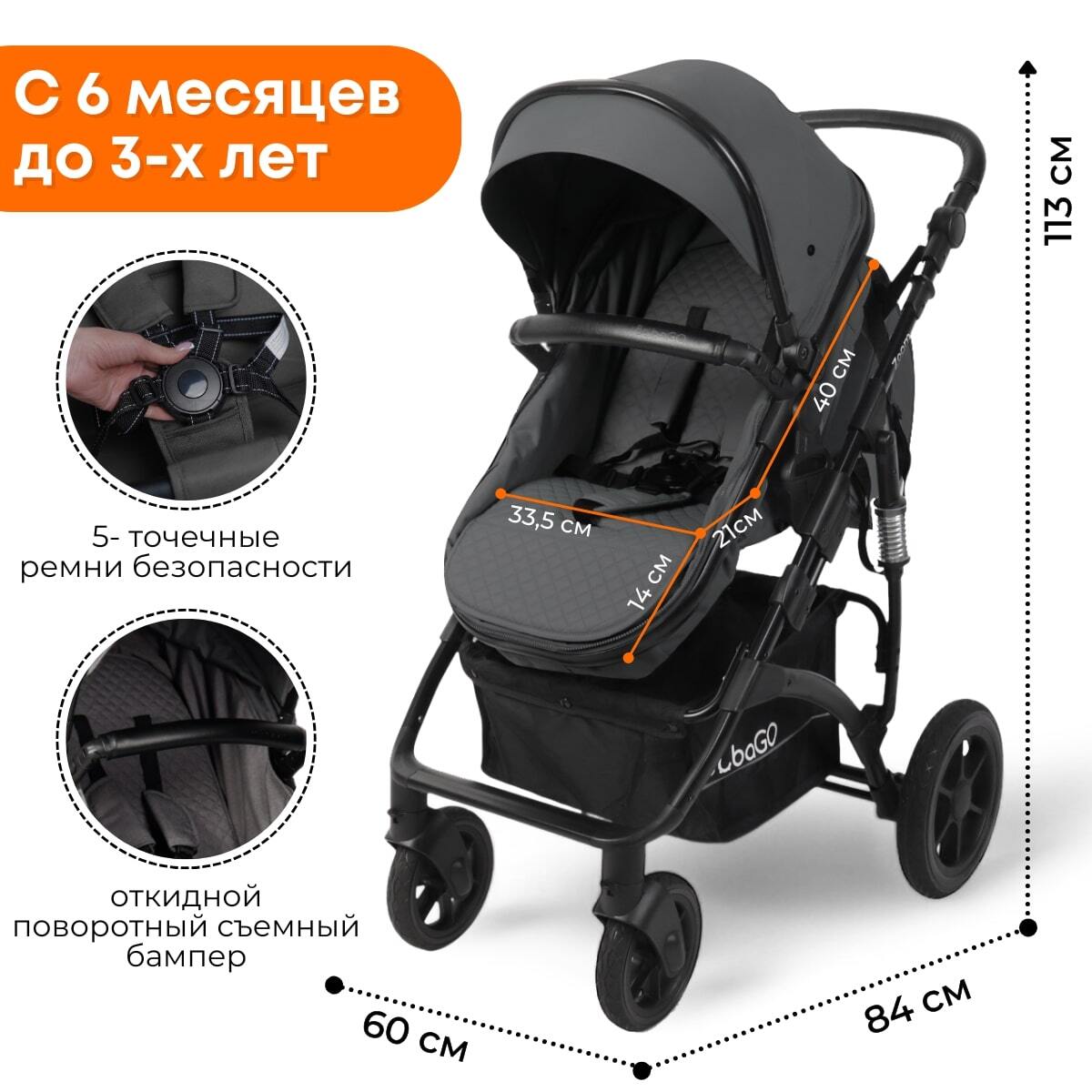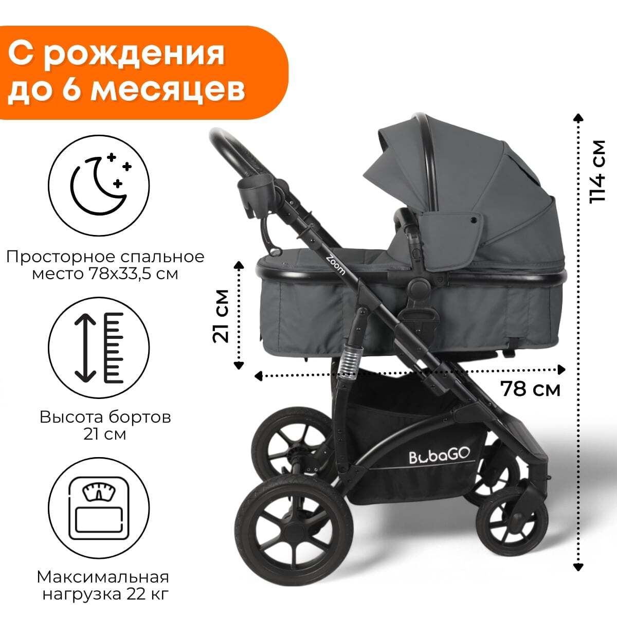 Коляска детская BubaGo Zoom BG 196-2 (3в1, темно-серый)