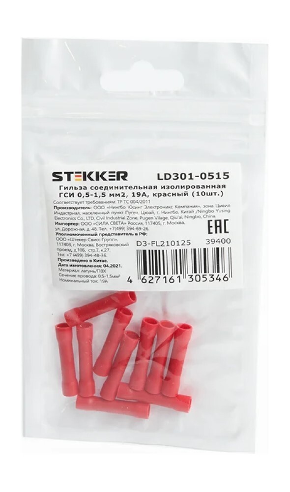 Задайте первый вопрос о Соединительная гильза Stekker 0,5-1,5 мм2 19A LD301-0515 (10 шт)