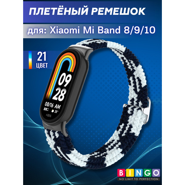 Ремешок Bingo Braided Xiaomi Mi Band 8 Черный с белым