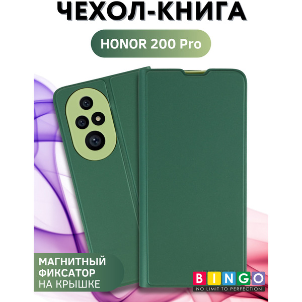 Отзывы на Чехол-книга BINGO Magnetic для HONOR 200 Pro (темно-зеленый)