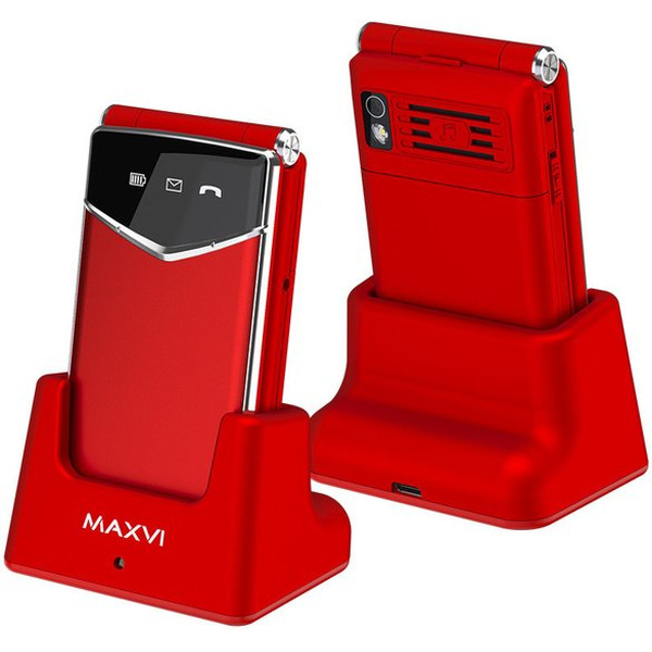 Кнопочный телефон Maxvi E11ds (красный/серебристый)