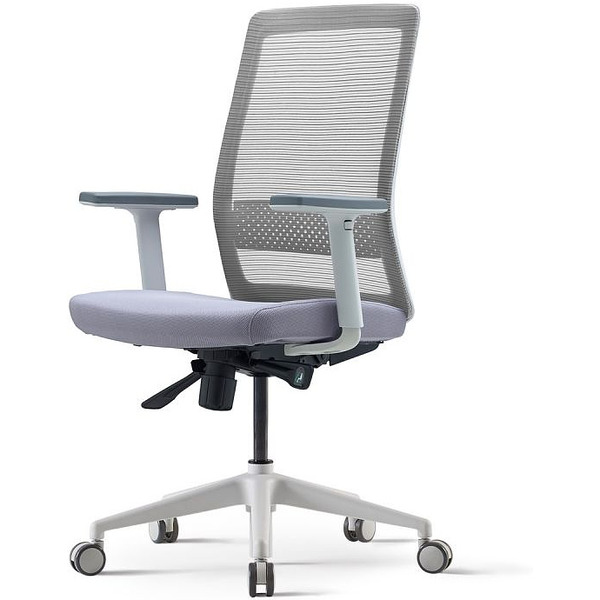 Кресло д/руководителя BESTUHL S30 (бел. рама,спинка-сетка черн, сид-ткань, серый)