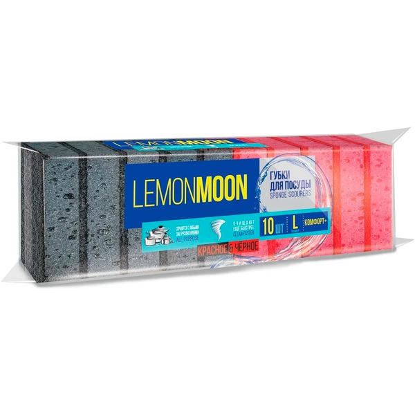 Набор губок для мытья посуды Lemon Moon Красное и черное L016 (10шт)