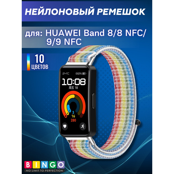 Ремешок Bingo Nylon HUAWEI Band 8/8 NFC/9/9 NFC Радуга с белым