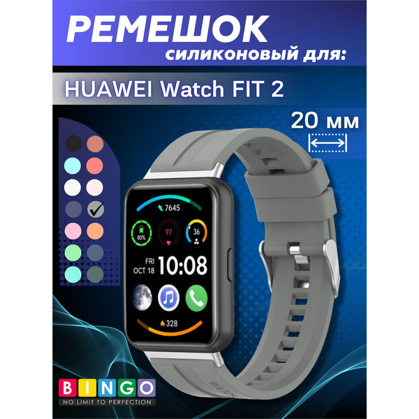 Ремешок BINGO Silicone Stripe для HUAWEI Watch FIT 2 Classic/Active/Elegant (серый)