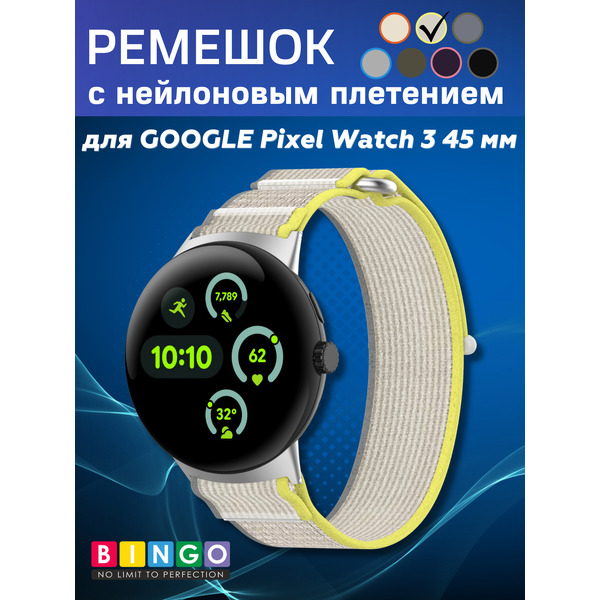 Отзывы на Ремешок для умных часов Bingo Nylon Buckle GOOGLE Pixel Watch 3 45мм Серый с желтым