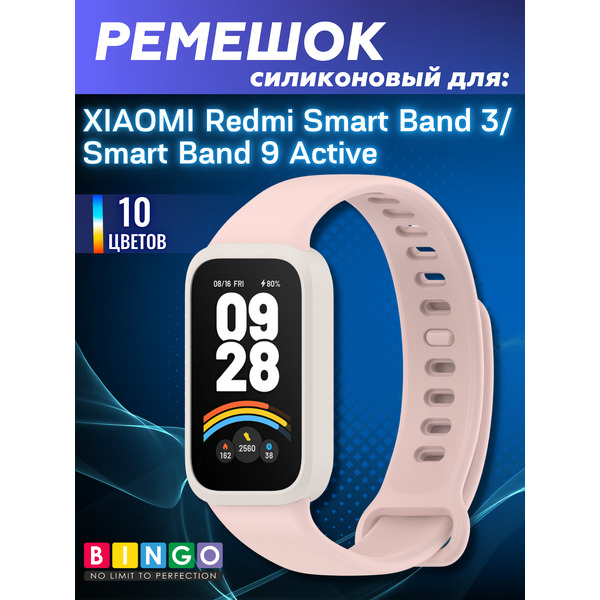 Отзывы на Ремешок для умных часов Bingo Silicone для Xiaomi Redmi Smart Band 3/Smart Band 9 Active (белый/розовый)