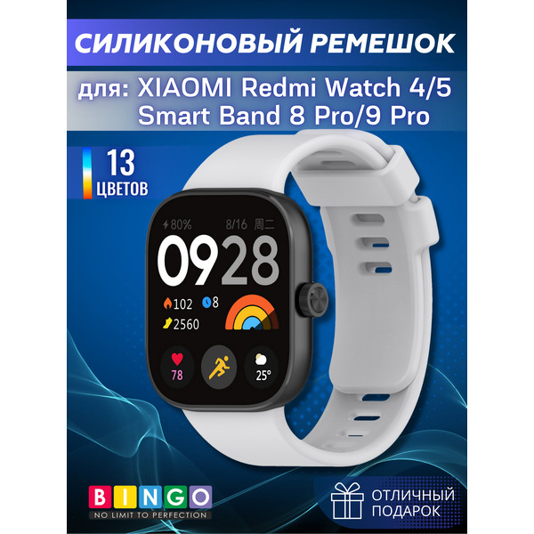 Отзывы на Ремешок для умных часов Bingo Silicone для Xiaomi Redmi Watch 4/Smart Band 8 Pro (светло-серый)