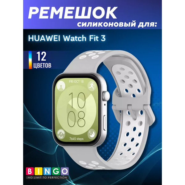 Ремешок для умных часов Bingo Sport для HUAWEI Watch Fit 3 (серый/белый)