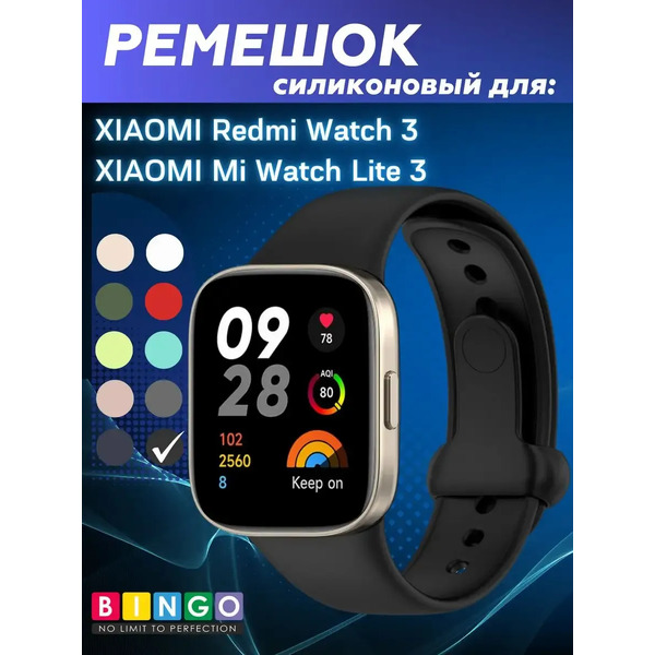 Отзывы на Ремешок для умных часов Bingo Silicone для Xiaomi Mi Watch Lite 3/Redmi Watch 3 (черный)