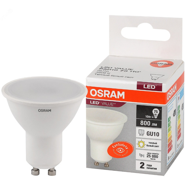 Отзывы на Светодиодная лампа OSRAM PAR16 10W 3000К GU10