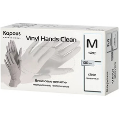 Виниловые перчатки KAPOUS Vinyl Hands Clean р-р M (100 шт, прозрачный)